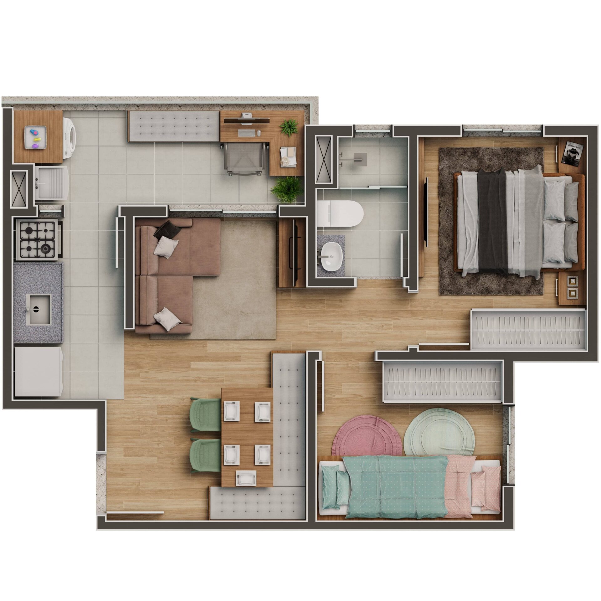 100% DO APARTAMENTO ENTREGUE COM PISO