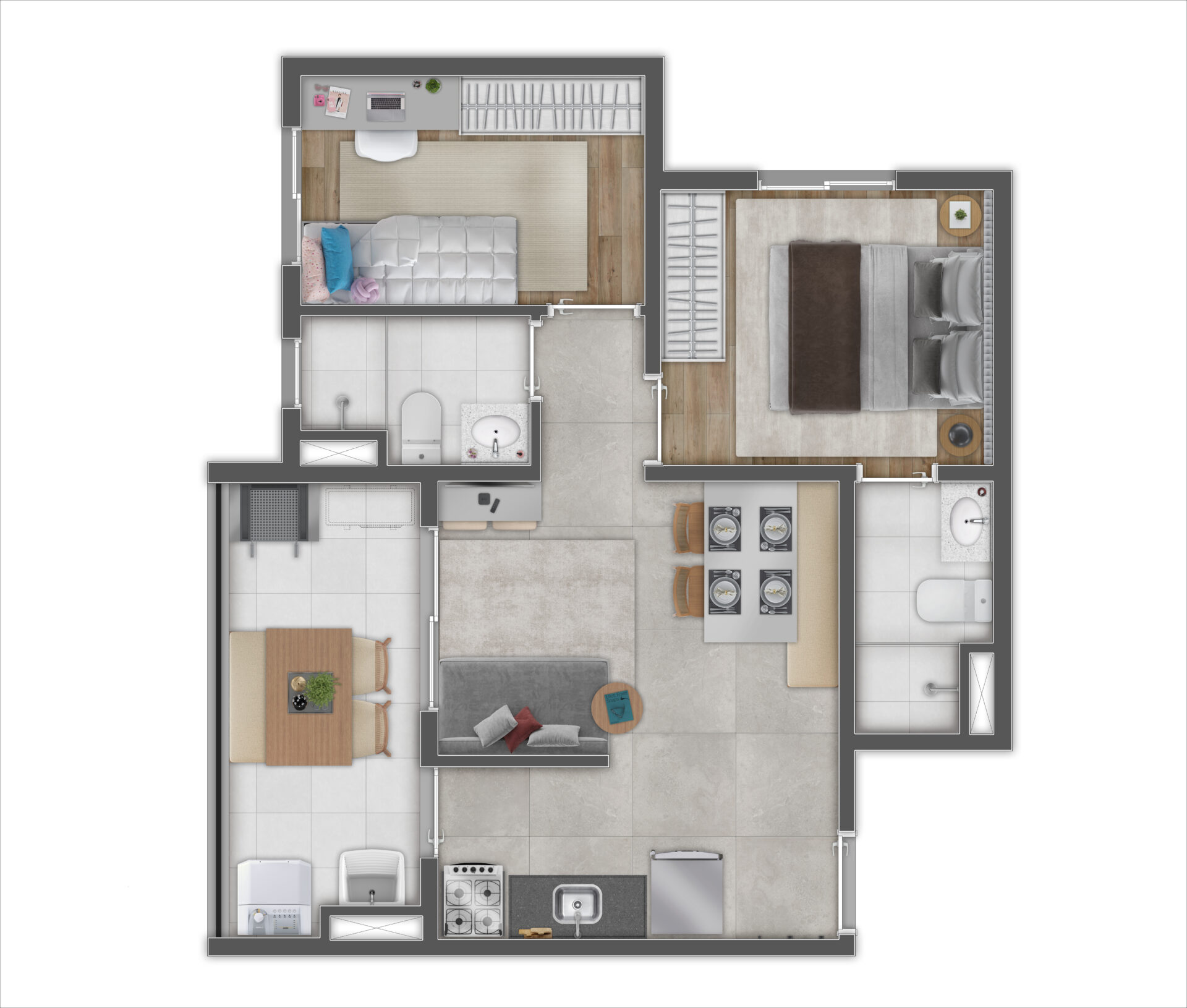 CHUVEIRO A GÁS NAS UNIDADES DE 2 DORMS. COM SUÍTE